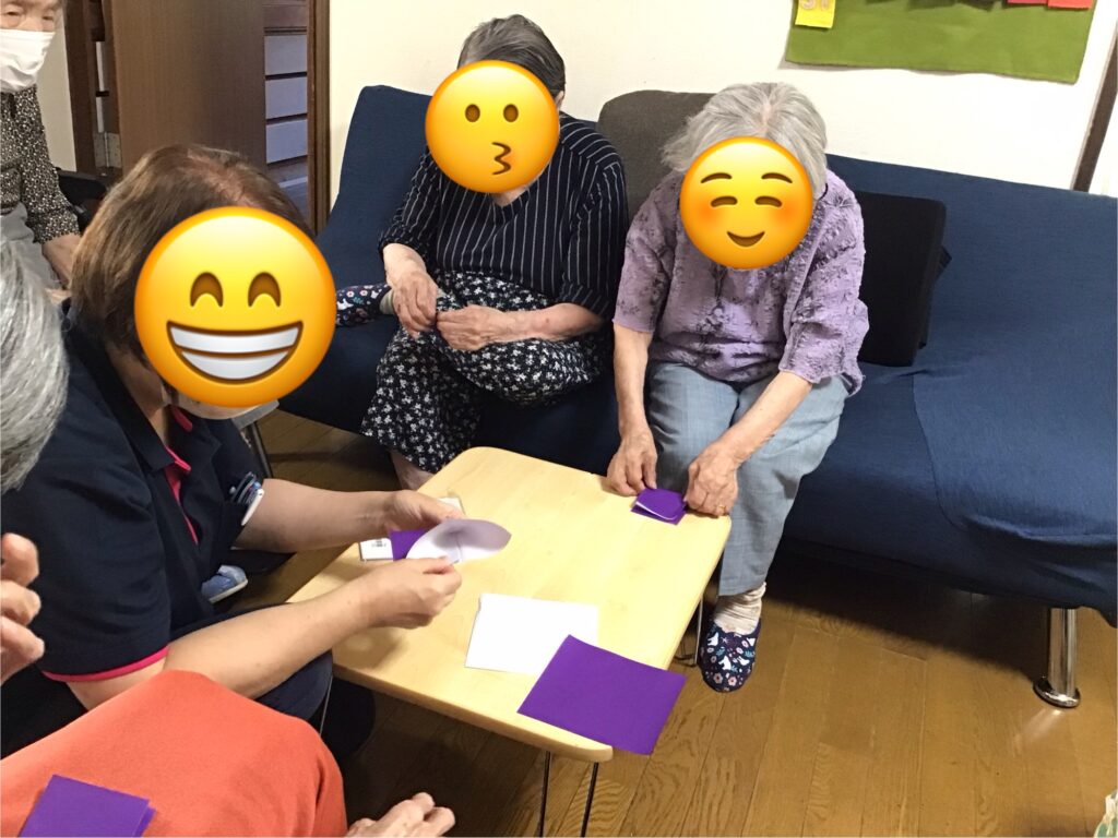 なんとデイサービス手稲のご利用者様の1番のご年齢の103歳のご利用者様レクチャーしながらも折り紙を折り進めている中「昔良く折り紙していた」と仰り黙々と🍇の粒を折られておりました🍇