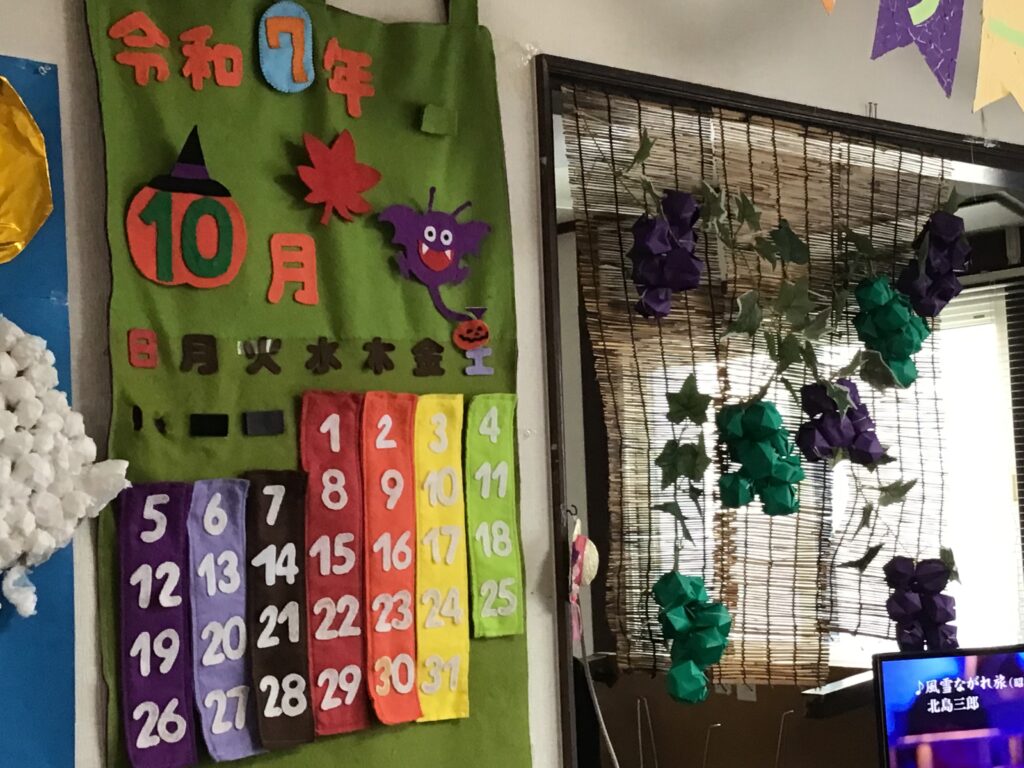 室内の装飾は🍇とお月見でお月見の雲も皆さんと一緒に作成して室内を彩る事に皆さんと大満足の飾り付けとなりました🌕🐇🎑