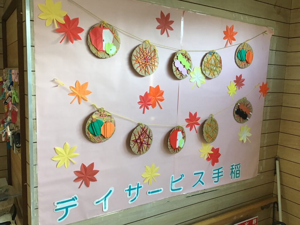 玄関には秋の味覚の美味しそうな装飾を🍠ご利用者様と楽しく制作して飾り付け出来ました🌰