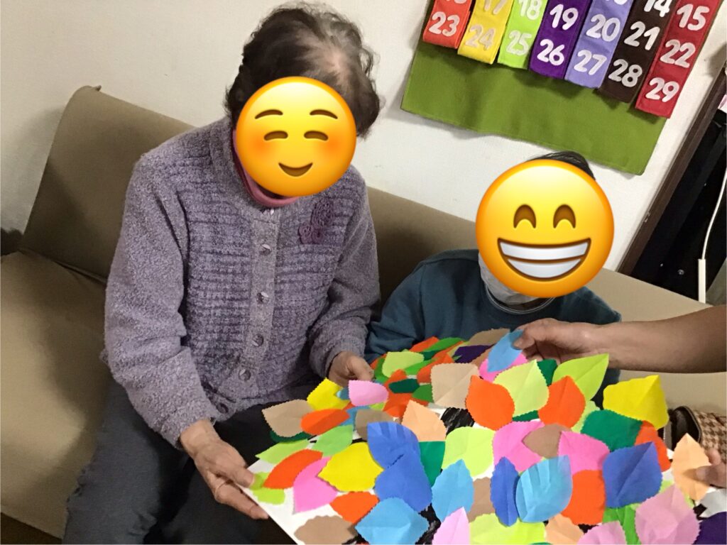 こちらはご利用者様がご持参された折り紙で「何か作ろうよ」と提案して頂き皆さんと一緒に考え作りました今年最後の🍁紅葉🍁となります🍁